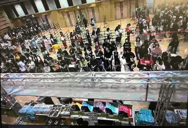 グッズ販売会場がえんてつホールの為、朝早くから多くのお客様が遠鉄百貨店新館の周りをぐるりと並んでいました。